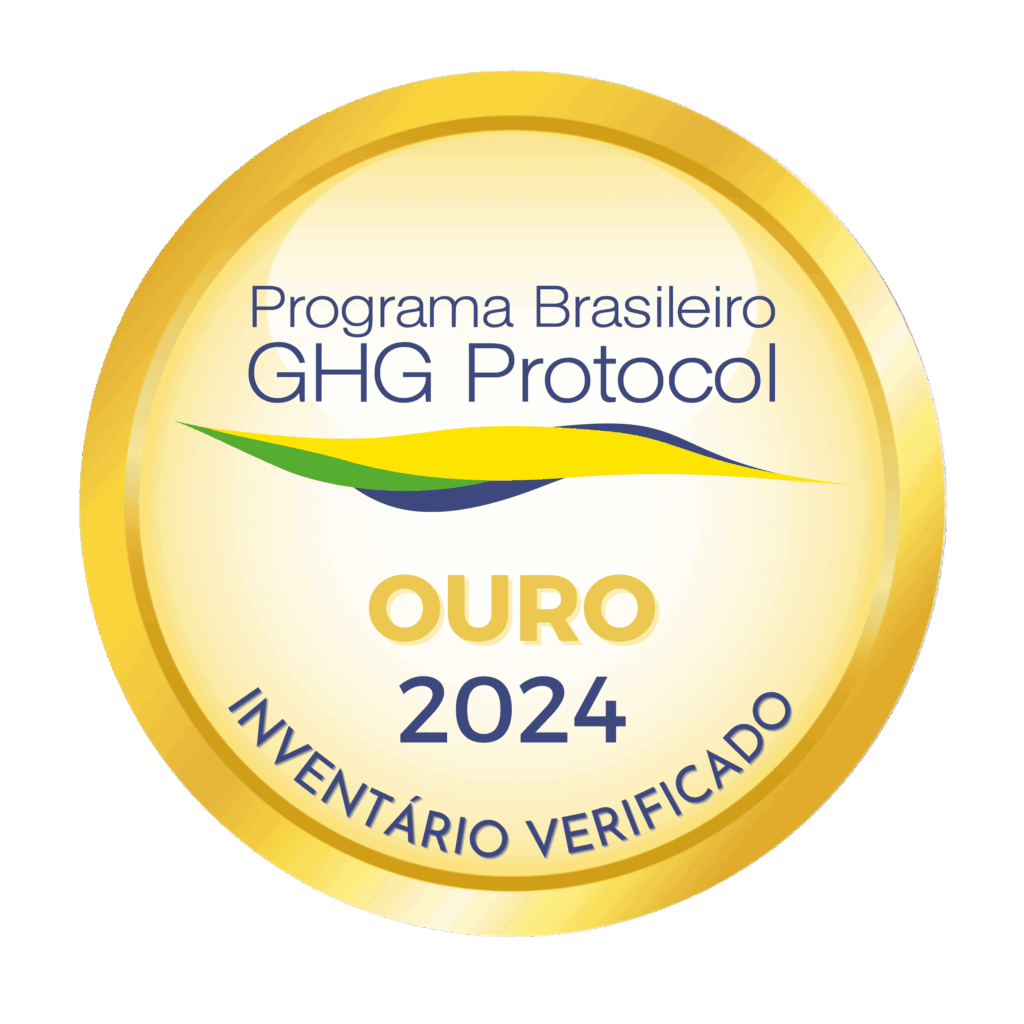 Em 2024, recebemos o Selo Ouro do GHG Protocol, um reconhecimento de nossas iniciativas para a gestão eficiente das emissões de gases de efeito estufa, refletindo nosso compromisso com a sustentabilidade.
